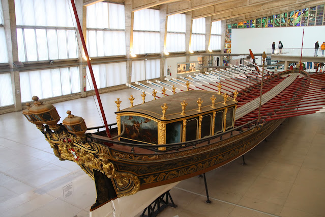 L'église Sainte-Marie - malheureusement fermée lors de notre visite - contient entre autres le tombeau de Vasco De Gama. En effet le Monastère des Hiéronymites naît à une période où le Royaume du Portugal - grâce à son empire colonial en pleine expansion - amasse de véritables fortunes, qui permettent entre autres de financer de tels chantiers. Pour en apprendre plus sur le sujet, on ira au Musée de la Marine, accolé au monastère. L'histoire maritime du Portugal est fascinante. Le pays, débarrassé de l'occupation maure à la fin du XIIIe siècle commence à développer sa marine alors qu'en Méditerranée les Républiques maritimes de Venise et de Gênes sont à leur apogée grâce au commerce des épices, de l'encens et de la soie. Avec l'expansion de l'Empire ottoman au début du XVe siècle, les négociants italiens sont de plus en plus limités dans leurs activités commerciales. En parallèle les marins portugais explorent progressivement l'Atlantique et atteignent les Açores en 1427 puis le Cap-Vert en 1444. Bartolomeu Dias contourne ainsi le Cap de Bonne-Espérance en 1488, Vasco de Gama atteint les côtes indiennes en 1498 alors que Pedro Álvares Cabral accoste sur ce que deviendra le Brésil en 1500. Travaillant pour la couronne espagnole, Fernand de Magellan, né à Porto, fut le premier navigateur à réaliser un tour du monde complet. S'il fut tué aux Philippines en 1521, son équipage put toutefois rejoindre son point de départ: Séville. / The church of Santa Maria - unfortunately closed at the time of our visit - contains the tomb of Vasco De Gama. The Monastery of the Hieronymites was built at a time when the Kingdom of Portugal - thanks to its rapidly expanding colonial empire - was amassing real fortunes, which made it possible to finance such projects, among other things. To find out more, visit the Marine Museum, right next to the monastery. Portugal's maritime history is fascinating. The country, freed from Moorish occupation at the end of the 13th century, began to develop its navy, while in the Mediterranean the maritime republics of Venice and Genoa were at their peak thanks to the spice, incense and silk trades. With the expansion of the Ottoman Empire in the early 15th century, Italian merchants were increasingly restricted in their trading activities. At the same time, Portuguese sailors gradually explored the Atlantic, reaching the Azores in 1427 and Cape Verde in 1444. Bartolomeu Dias rounded the Cape of Good Hope in 1488, Vasco da Gama reached the Indian coast in 1498 and Pedro Álvares Cabral landed on what was to become Brazil in 1500. Working for the Spanish crown, Fernand de Magellan, born in Porto, was the first navigator to circumnavigate the globe. Although he was killed in the Philippines in 1521, his crew was nevertheless able to reach their starting point in Seville.